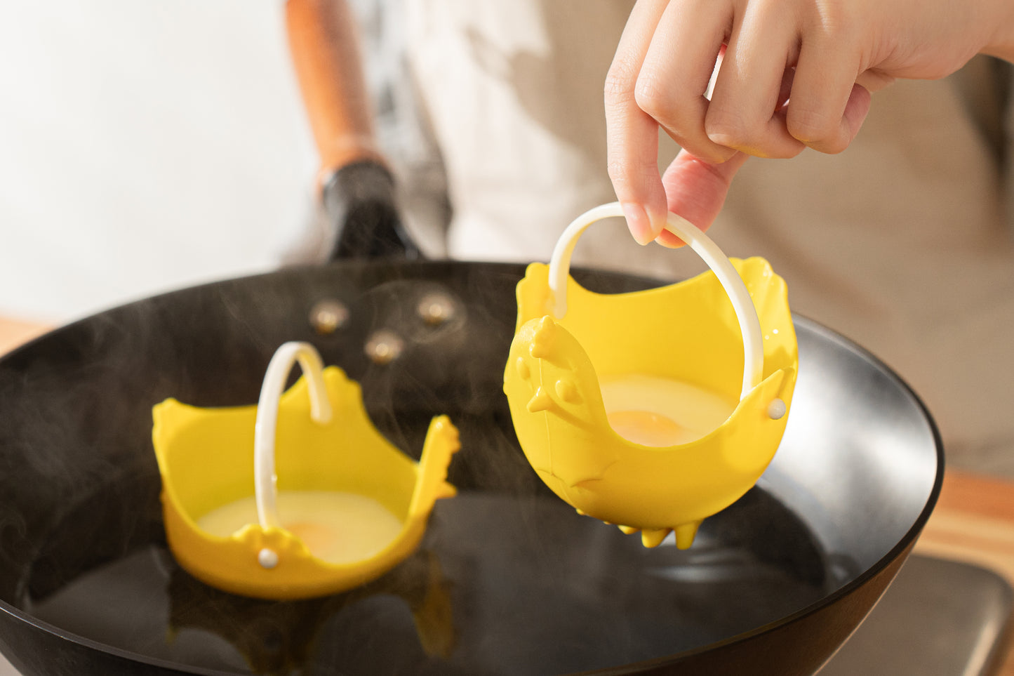 Prepara’s Egg Poacher makes it easy to create restaurant-quality poached eggs at home. Made from high-quality silicone with a fun chicken design, these poachers feature stable feet for upright cooking and an included handle for easy transfer from pan to table, even fitting jumbo-sized eggs.